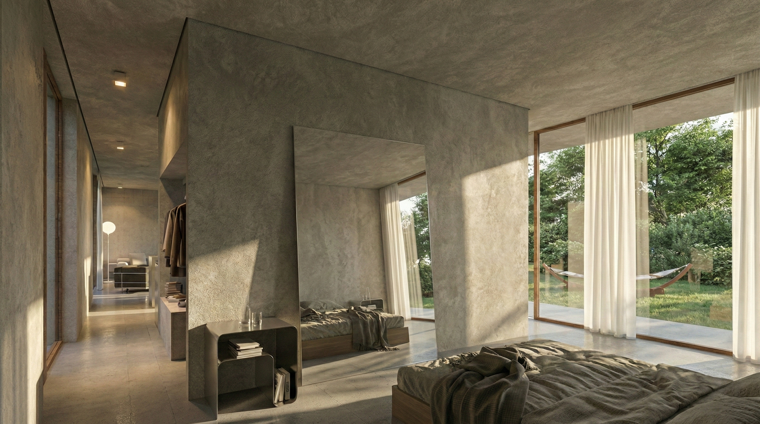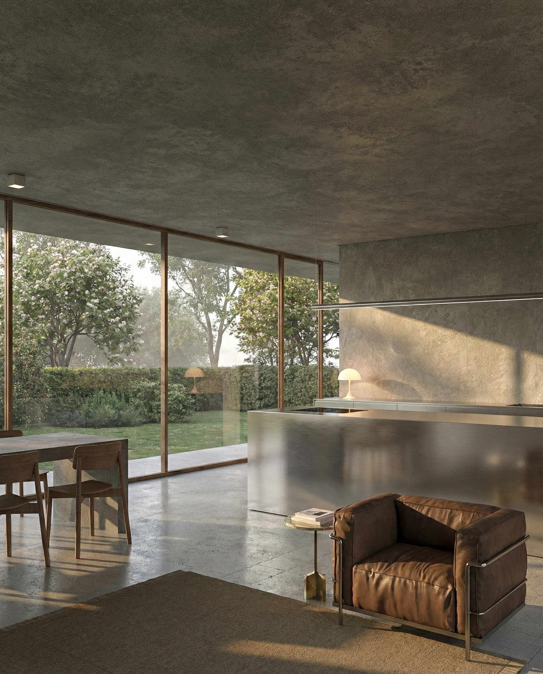 Nestled on the outskirts of Riga, Latvia, this single-story concrete house blends seamlessly with its natural surroundings. Its minimalistic design takes inspiration from the simplicity of a frame house, reimagined in raw concrete. The clean, angular lines of the structure harmonize with the surrounding landscape, evoking a sense of calm and permanence. The house’s most striking feature is its fully glazed back façade, offering an uninterrupted view of the serene forest and meadows beyond. This expansive wall of glass dissolves the boundary between indoors and outdoors, flooding the interior with natural light and framing the beauty of the changing seasons.