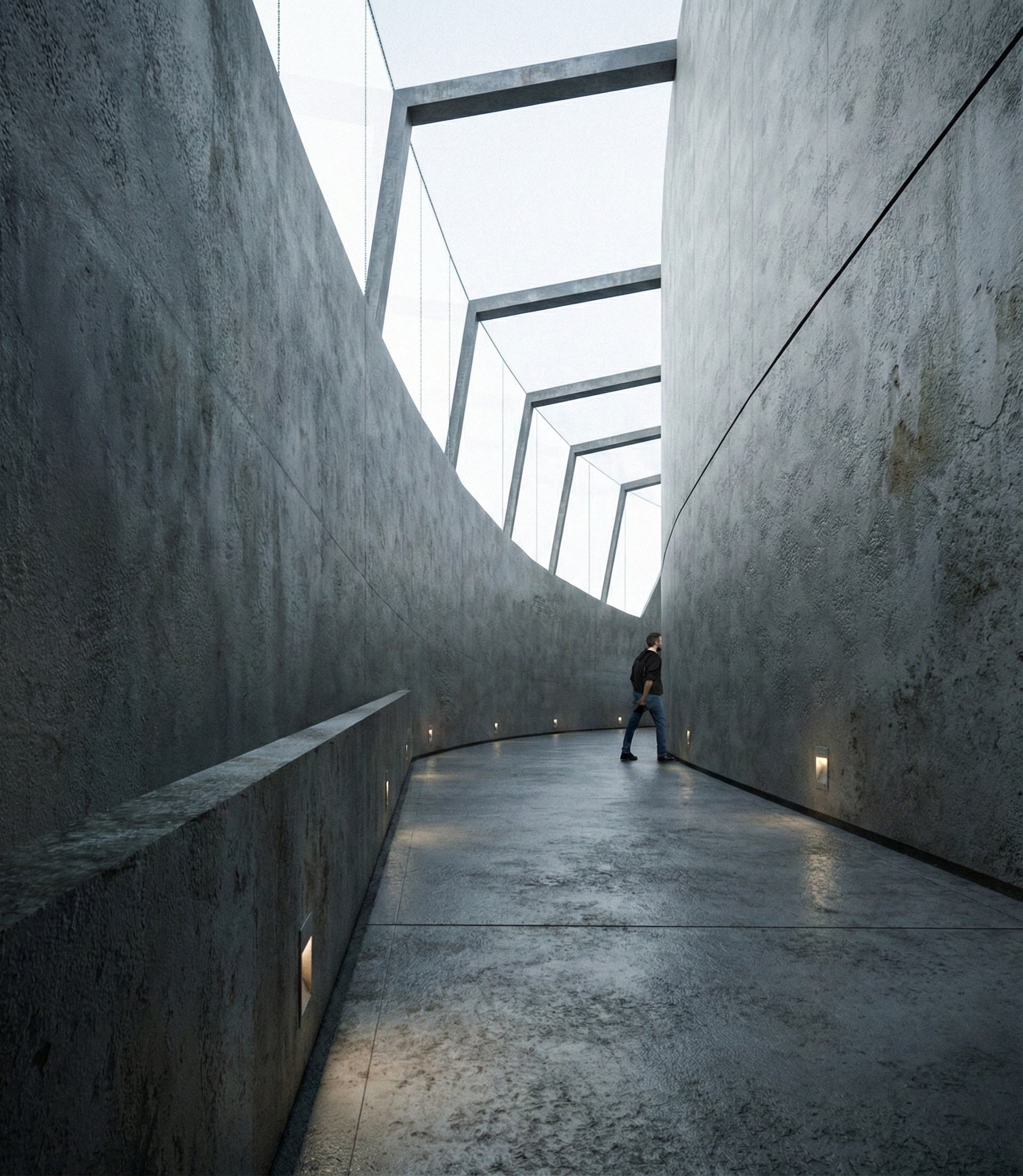 Moreover, four connecting points lead to the intervention. It is crucial to keep in mind tha the principles are also reflected in the connections. The first connection is from the rounda bout, through the existing runway. The second is through the existing platform, in which events take place from time to time. The third one is through the ocean and the highway where the con- nection between the ocean and the park lies under the highway through a tunnel. Last but not least, the users are able to reach the intervention through the existing park, that is, the City Park of Porto.